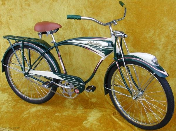 This Beautiful 1949 Schwinn Henderson B-6 was one of Schwinn’s Top of the Line Bicycles with All the Bells and Whistles. The B-6 was considered a Lesser Model than the Popular Schwinn Phantom, but is now Considered More Desirable. The extensive Beautiful Paint work Proves More Desirable than the Chrome features of the Phantom. The B-6 is one of my Favorite Antique Bicycles and Schwinn’s Incredible Style, Beauty, and Quality makes it an easy decision.