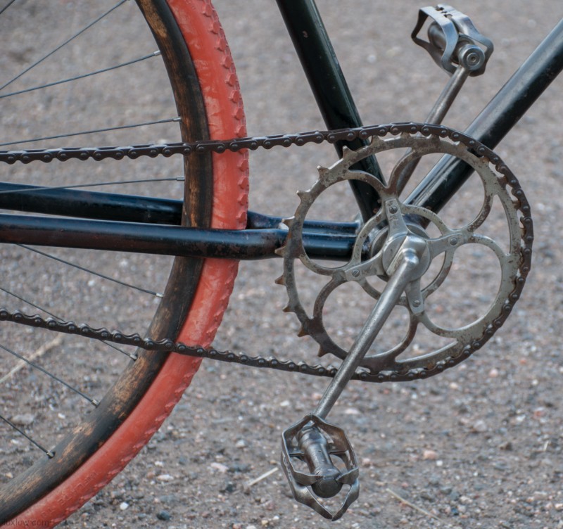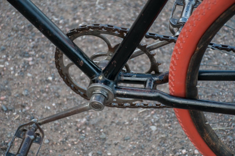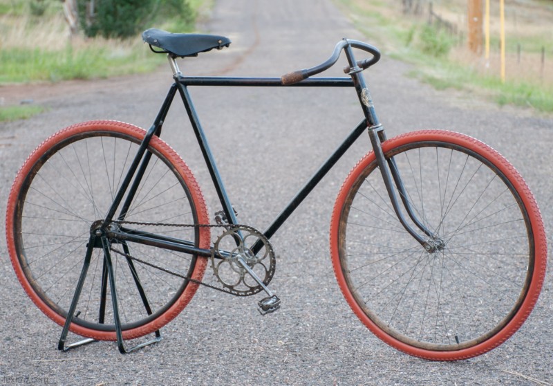 Vintage Turn of the Century ABC Geneva Fixed Gear Racer Bicycle made in Geneva, Ohio. The Geneva is a Quality Bicycle with it’s own unique parts and design, like the hanger and 2 piece cranks, a Fine example of early small company manufactured bikes. This Geneva is part of Pope’s American Bicycle Company Trust but still Remains all Geneva. As Later bikes can be convoluted and a mix of parts. I date this bike to be around 1900 or 1901.