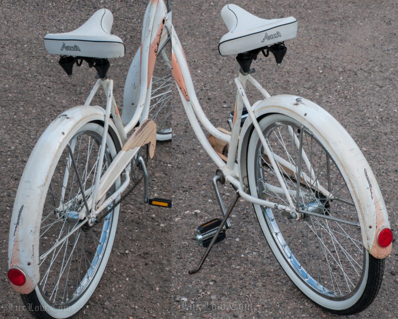 This is a Full size Ladies Adult Ballooner Bicycle With The Big, Cushy, Fat New Schwinn Pattern 26″x 2.125″ White Wall Tires and New Chrome Wheels. It’s Amazing this Bicycle is 50 Plus Years Old and her Rebuild Will Outlast Anything Bought New Today.Click here for Details of the Lux Low Vintage Patina Restoration Process on this Bike.