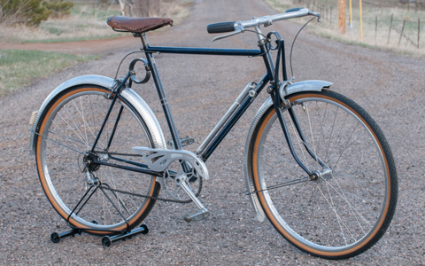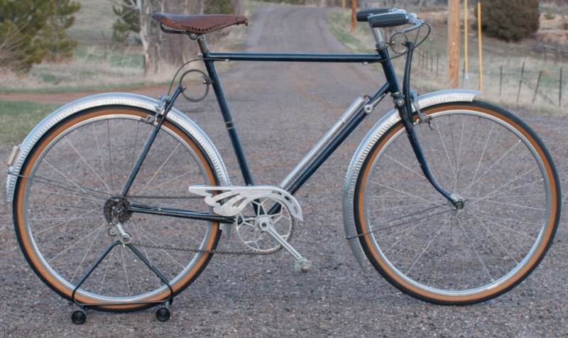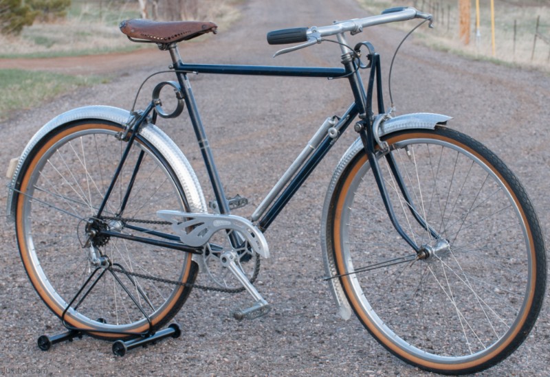 This AFA Randonneur Bike is a pretty amazing bicycle for the times. It has had a total Lux Low Patina Restoration, Rebuild, with Original parts to the bike as found. I once was irritated with French bikes because they were hard to work on, but now appreciate the Quality and Domination they held in the industry in the early days. The frame is Light weight Steel, I suspect Vitus Tubes. It has unique Front & Rear Spring & Pivot Suspension. Le Simplex Gears: Shifter & Rear Derailleur, and French Cyclo Freewheel. Lightweight Duralumin Parts: Handle Bars, Stem, 5 Pin Cranks & Chainring, Hubs, Rims, Le Martele Mud Guards, Alu-Dur Chain Guard. The Brakes look like CLB with no logos, oddly a lot of parts on this bike have no logos, looking like prototypes or even knockoffs. The wheels are 650B alloy Rims laced to what I believe to be New Star Hubs ( they have a Shooting Star logo ). 650b Wheels by todays standard is called 27 five. It has a Ideal Leather Saddle, Has a Lapize AFA pump, and some overly designed valve caps. The Grips & Spokes are newer replacements. This is a Cool French Randonneur Bicycle, Rebuilt & Ridable, but the Vintage Simplex gears will skip a chain, for that I feel this is more of a show piece than a daily rider.Local Sale: Cash Pickup in Golden, Colorado. Cash Price is Lower than our web posted prices.