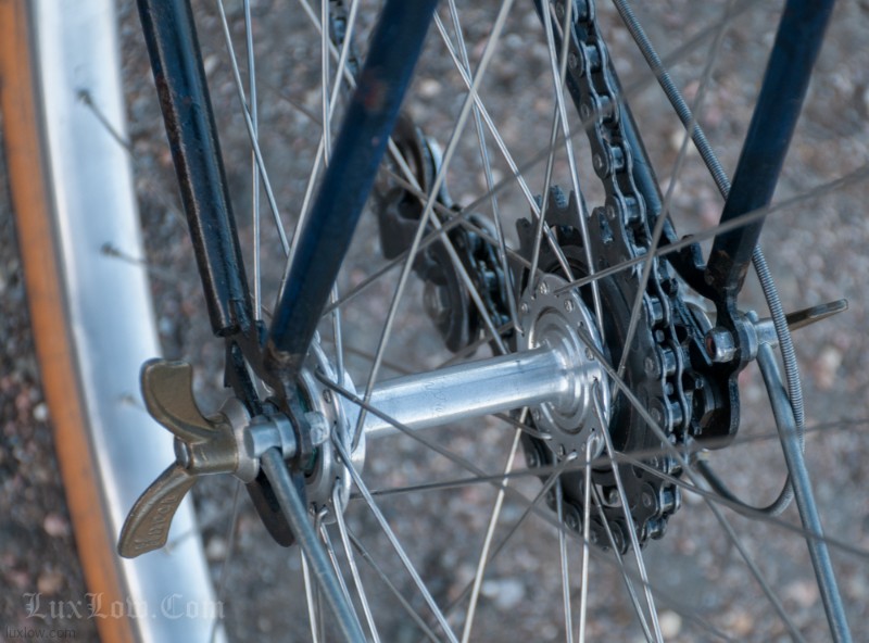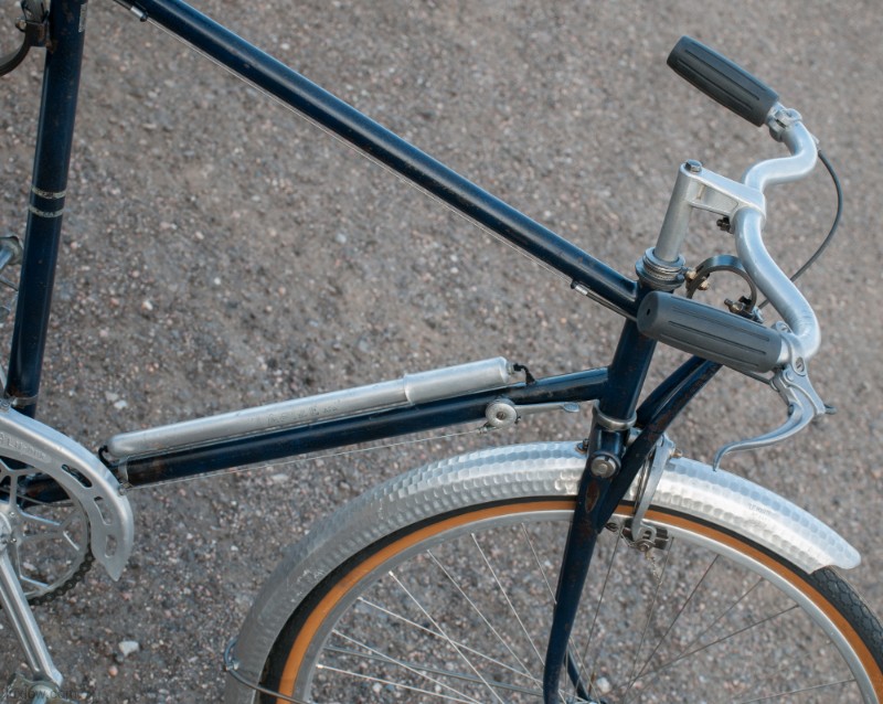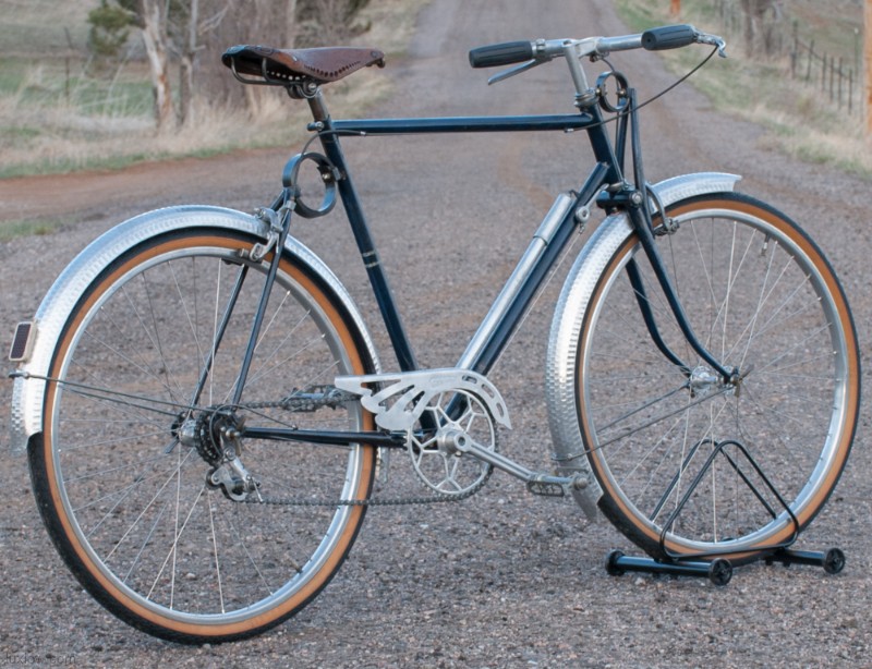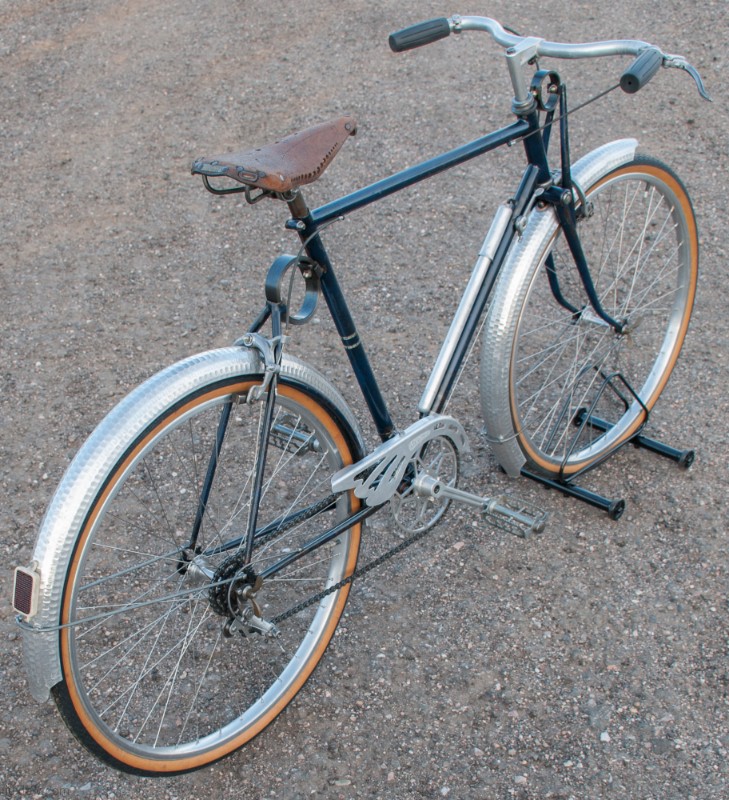This French AFA full suspension Randonneuring Bike was quite an advancement in Comfort & Style in 1955. The Randonneur Bike ” AKA, Hiker to the French ” is a Touring Bike for Getaways with bigger tires and comforts for long travel. This AFA tour bike a early version of the ever so popular Gravel Grinders of today. AFA was a French Bicycle manufacturer who most known for Christophe AFA toe clips, Bike Pumps, Toe Straps, and other bicycle accessories, I suspect this was there jump into the Luxury Bicycle market. The bike has many French advancements, it’s an early fillet brazed steel machine with Suspension that quite amazing. The Suspension is multiple layers of thin spring steel in a circle, oddly it works a lot better that other early suspension designs I have seen. It was very hard to find info on this bike, only noted in a few publications, I am unsure whether it was a full production, bespoke ride, or a show bike, it’s unique for sure. The bike is incredibly light weight and advanced for the time, Unfortunately it may of been too light weight and has led to only a few surviving bicycles.