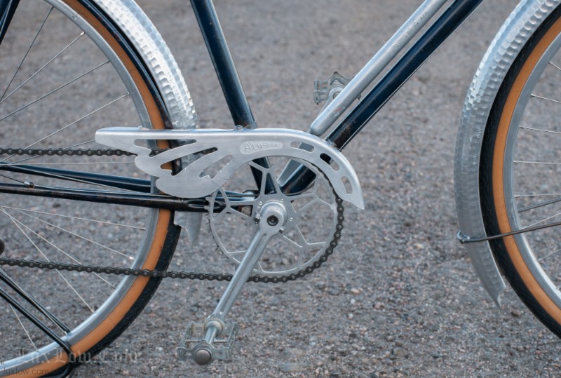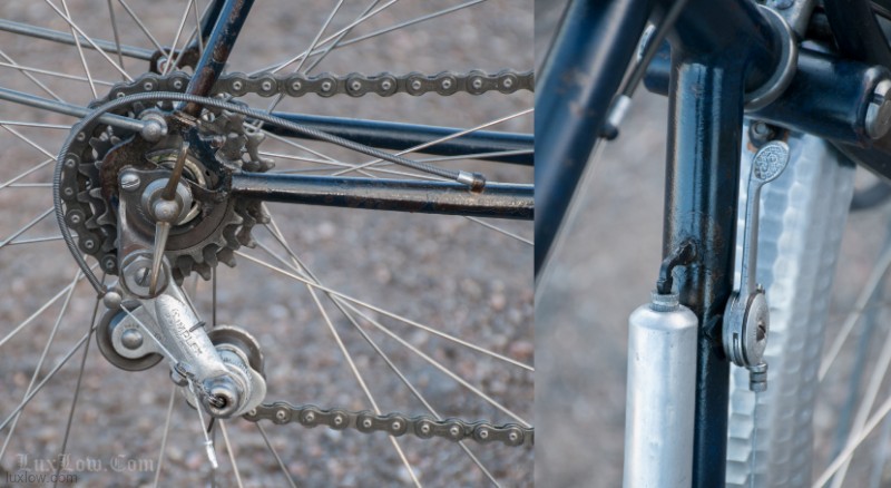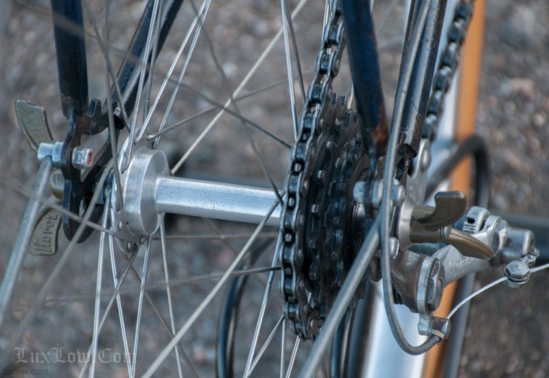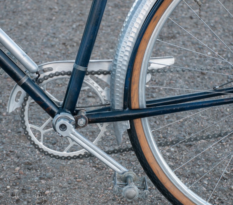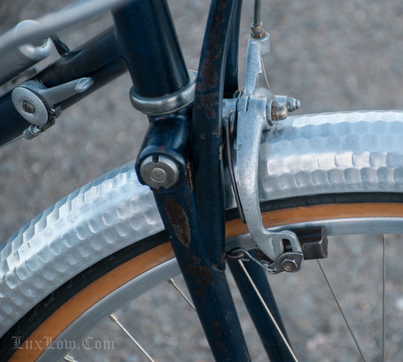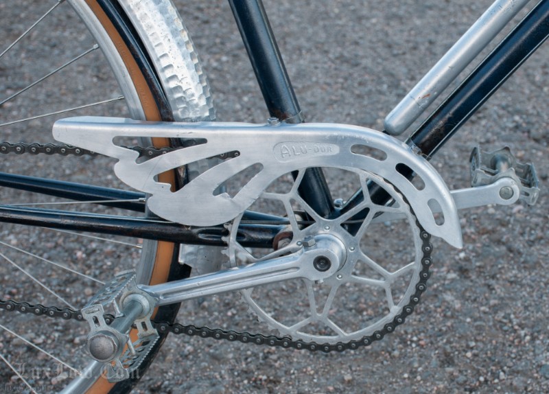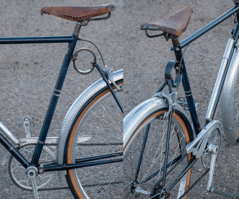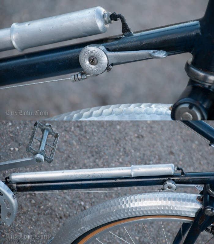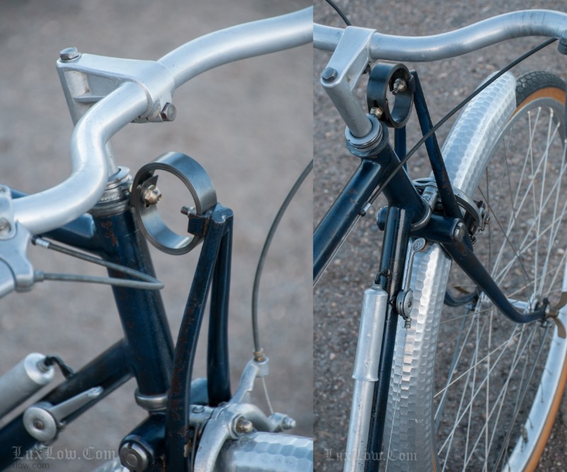 This French AFA full suspension Randonneuring Bike was quite an advancement in Comfort & Style in 1955. The Randonneur Bike ” AKA, Hiker to the French ” is a Touring Bike for Getaways with bigger tires and comforts for long travel. This AFA tour bike a early version of the ever so popular Gravel Grinders of today. AFA was a French Bicycle manufacturer who most known for Christophe AFA toe clips, Bike Pumps, Toe Straps, and other bicycle accessories, I suspect this was there jump into the Luxury Bicycle market. The bike has many French advancements, it’s an early fillet brazed steel machine with Suspension that quite amazing. The Suspension is multiple layers of thin spring steel in a circle, oddly it works a lot better that other early suspension designs I have seen. It was very hard to find info on this bike, only noted in a few publications, I am unsure whether it was a full production, bespoke ride, or a show bike, it’s unique for sure. The bike is incredibly light weight and advanced for the time, Unfortunately it may of been too light weight and has led to only a few surviving bicycles.