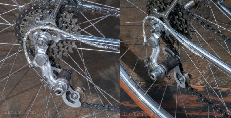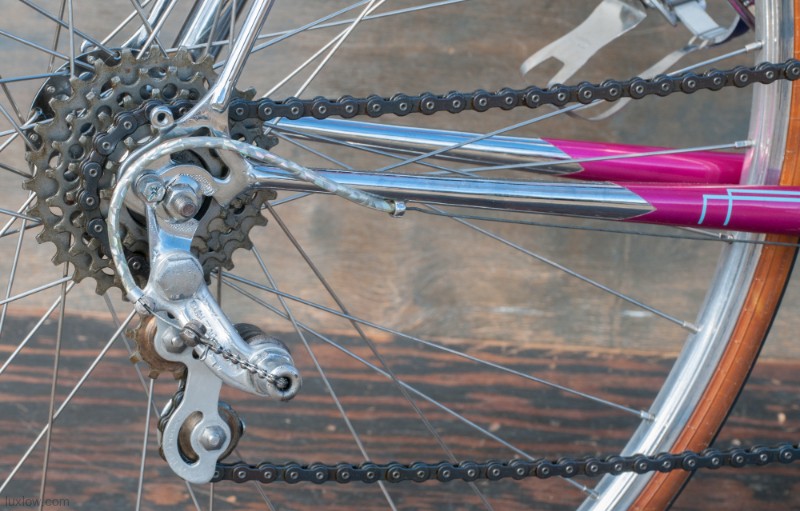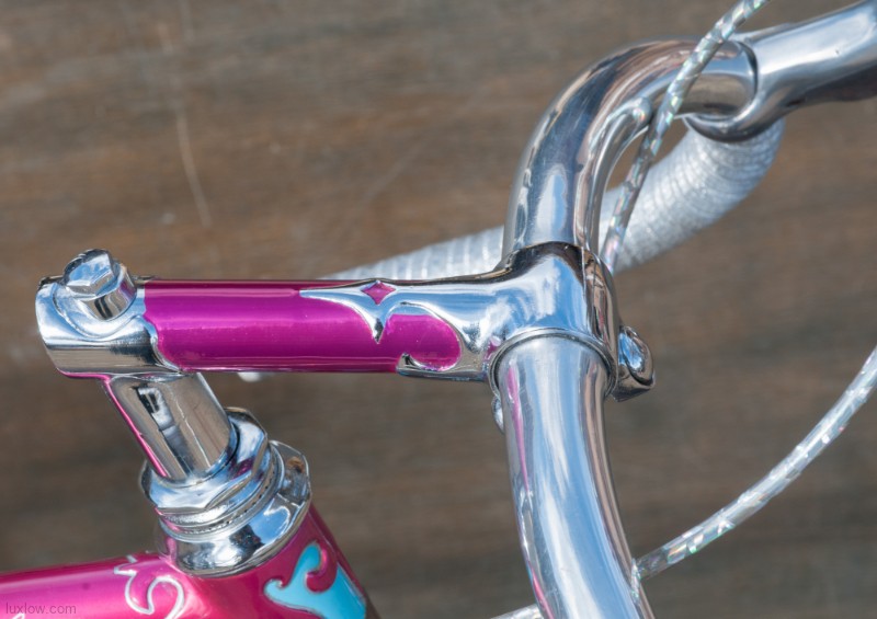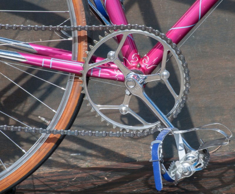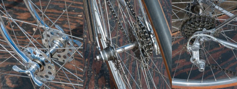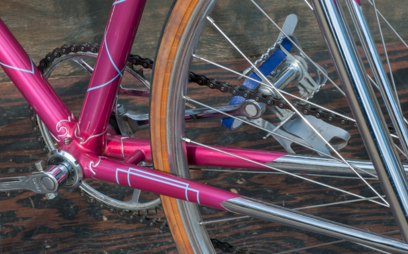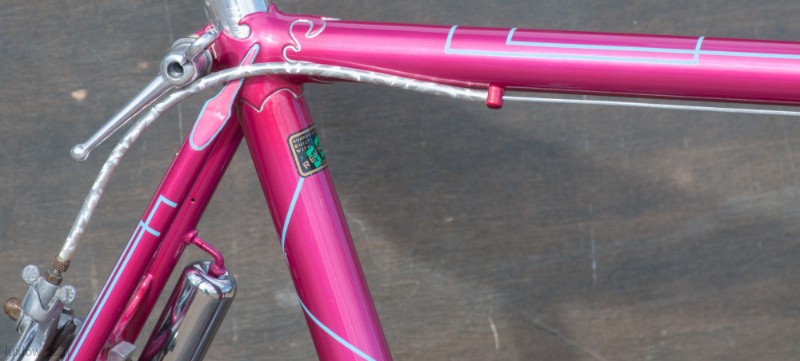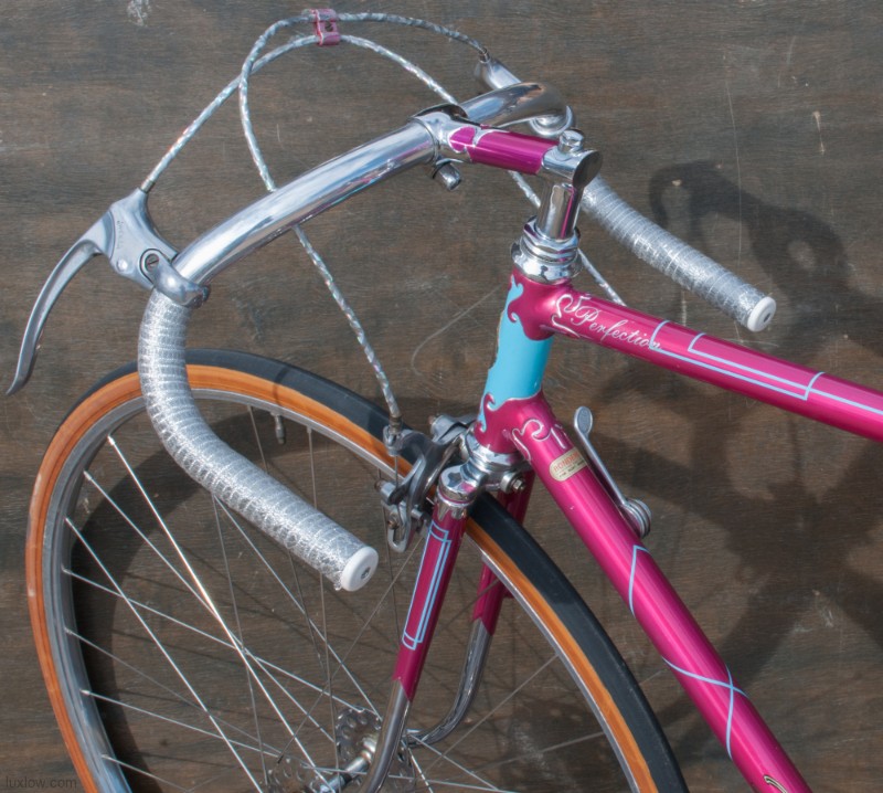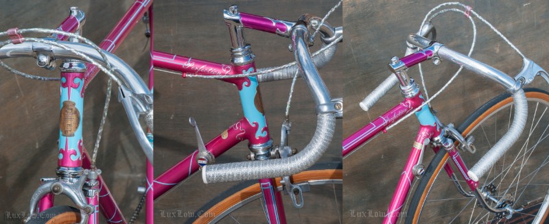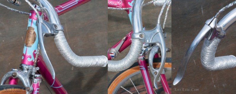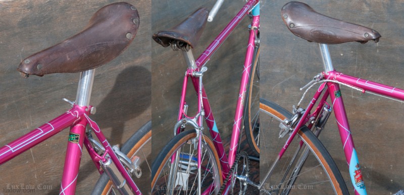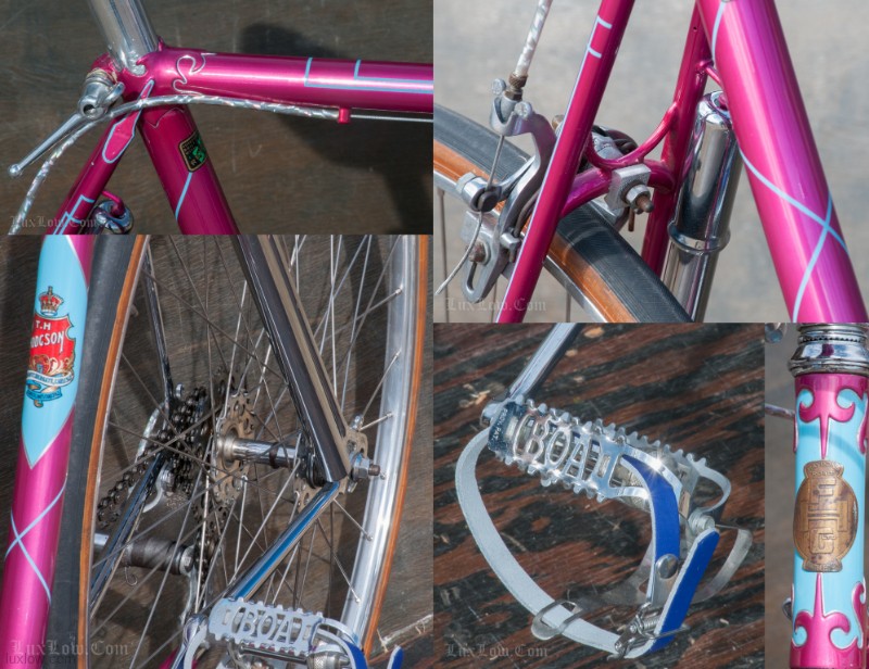 The paint on this F.H.Grubb Perfection is Absolutely Gorgeous, A Fine Restoration of a Bike once raced extensively and successfully by Daphne Grist. The Bike measures 55.5cm from the center of the bottom bracket to the center of the top tube or 57cm / 22.25″ Center to Top of the top tube. The top tube is 58cm / 23″ center to center with a 132mm tall head tube. The Frame and Fork are made with Reynolds 531 Steel Tubes and hand Cut Fancy Lugs. The Bike has South of France Azureen Handlebars with a Freddie Grubb Hand cut Fancy Lug Stem, CLB Brake Levers and Calipers, 5 Speed Cyclo Benelux Gears with DURAX Crank set, NOS BOA Constrictor Quill Pedals with GB Professional Cages, Wheels are 27″ x 1 1/4″ Dunlop KP Alloy Rims laced to BSA Large Flange Continental Hubs, and a Brooks B17 Leather Saddle. They Bike is a Master Piece, Please Enjoy the Multitude of Photos. Iconic Bicycle History and Beauty for a Museum, Collections, or L Erotica Ride.