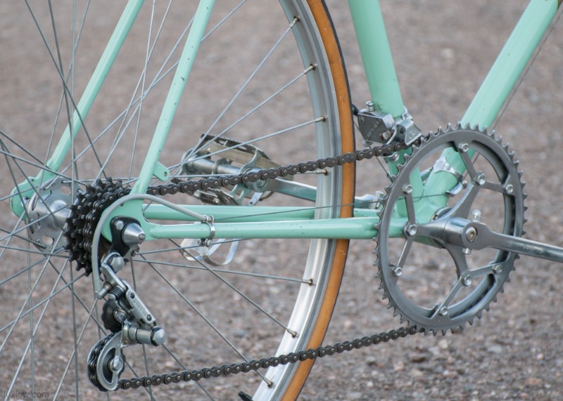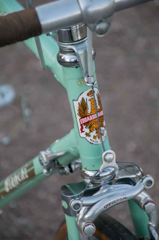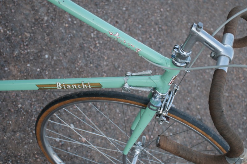 This is an Old Vintage Bianchi 56cm 8 Speed Road Racing Bike from 1969 in Iconic Celeste Color. Edoardo Bianchi is a Famous Italian entrepreneur and inventor who founded the bicycle manufacturing company Bianchi in 1885. The Bianchi Record bicycle is an example of a Bianchi’s attempt to reach mass markets. A lower end Bike with Bianchi labeled parts and newly introduced Campagnolo Valentino Extra Shifters and Derailleurs. This is a Cool Bicycle, although a Lower end bike, it survived.