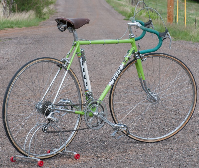 Vintage Chartreuse Zeus Supreme Racing 12 Speed Road Bike from the 1970s. Zeus was Spain’s Premier Road Bike Manufacturer and they had a State of the Art facility. Zeus was one of the only manufacturers to create all parts from Frame to Componentry all in house and all labeled Zeus. Oddly Enough a lot of parts look exactly like Campagnolo parts branded Zeus, Unfortunately there is No Current proof of a Zeus Campagnolo alliance, just speculations that add to the Myth of the bicycle called Zeus. The Supreme was Zeus’s Top of the line bicycle made of Reynolds 531 Steel tubing and adorned with Zeus’s best parts. This Bicycle is original as found and would be a great addition to a collection or a Retro Rider.