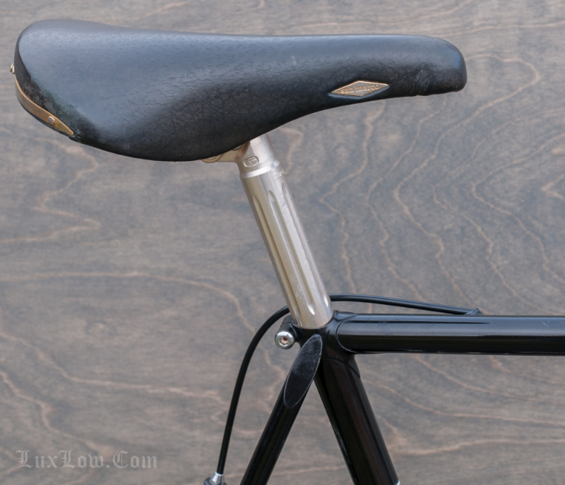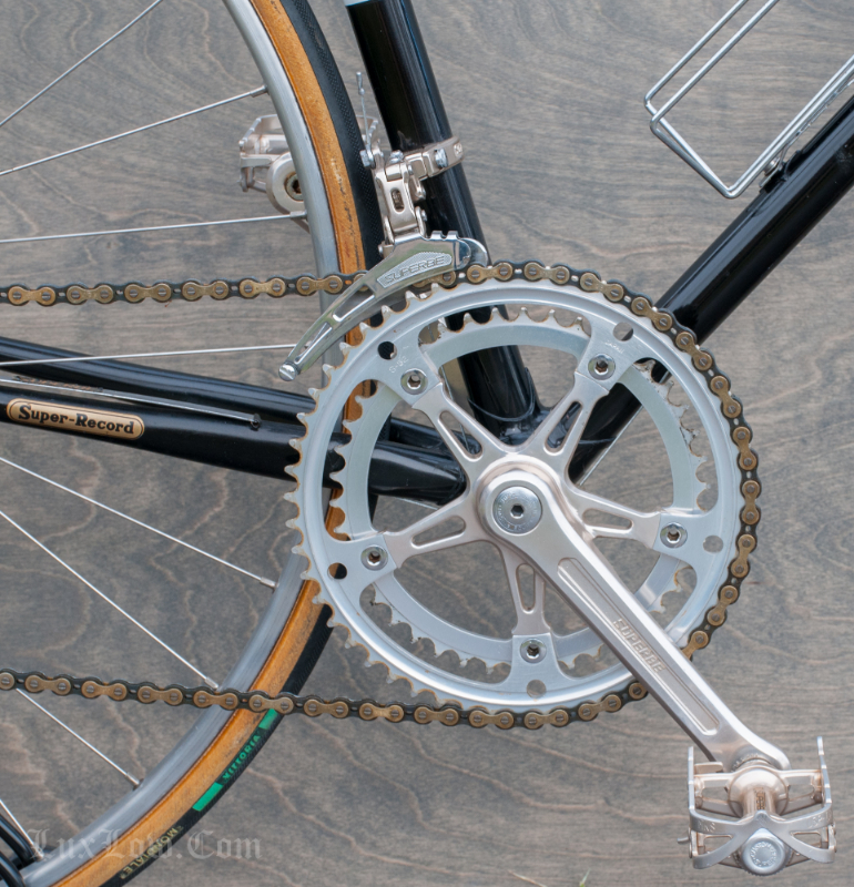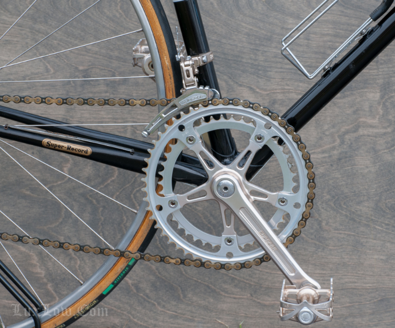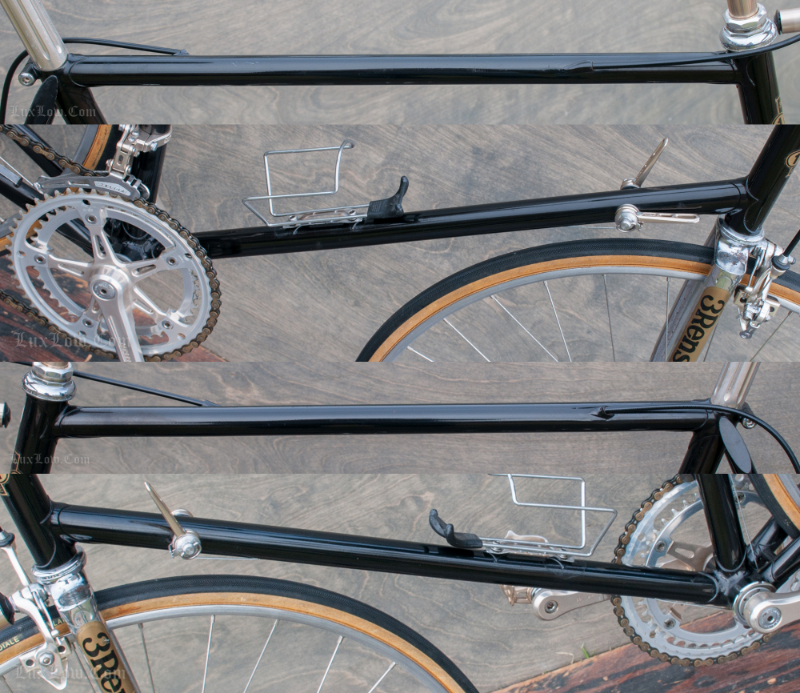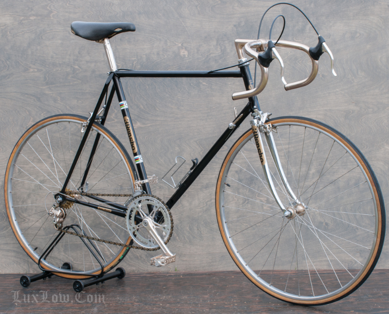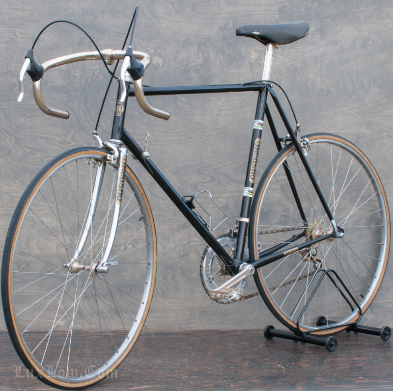This Vintage 3Rensho bike has Original paint with some touch up that is mainly on the bottom bracket shell an under the water bottle cage, On a black bike it is really hard to tell the touch up and over all looks looks very good for what has transpired. The Bike measures 58.5cm from the center of the bottom bracket to the center of the top tube or 60cm Center to Top of the top tube. The top tube is 56.5cm center to center and the head tube is 170mm tall. The Frame and Fork made of Ishiwata 017 Steel tubing with Tange lugs and a Tange Champion bottom bracket shell. The shift cables are internally-routed, via tiny holes that are so finely done that they disappear into the frame. The lugs are hand-cut in the “modulo” style, beautifully thinned and filed, with flourishes throughout that are not seen on other 3Rensho frames. The bike has Gold Suntour Superbe 1st Gen Parts: Cranks, Front and Rear Dérailleurs, Shifters, Pedals, Stem, Seat post, & Hubs. The Superbe Bottom Bracket & Headset are chrome finish. The Brakes & Levers are Gold Dia-Compe Royal Gran Compe 400. It has a Leather San Marco Rolls Saddle, The Handlebars are Gold Kusuki. The 700c wheels are Gold Superbe hubs laced to Mavic Red Label Clincher rims with Tires. Quite an Amazing Ride with High Craftsmanship and Historical Value, I consider this one of my Personal bikes although everything is for sale. Enjoy.Local Sale: Cash Pickup in Golden, Colorado. Cash Price is Lower than our web posted prices.