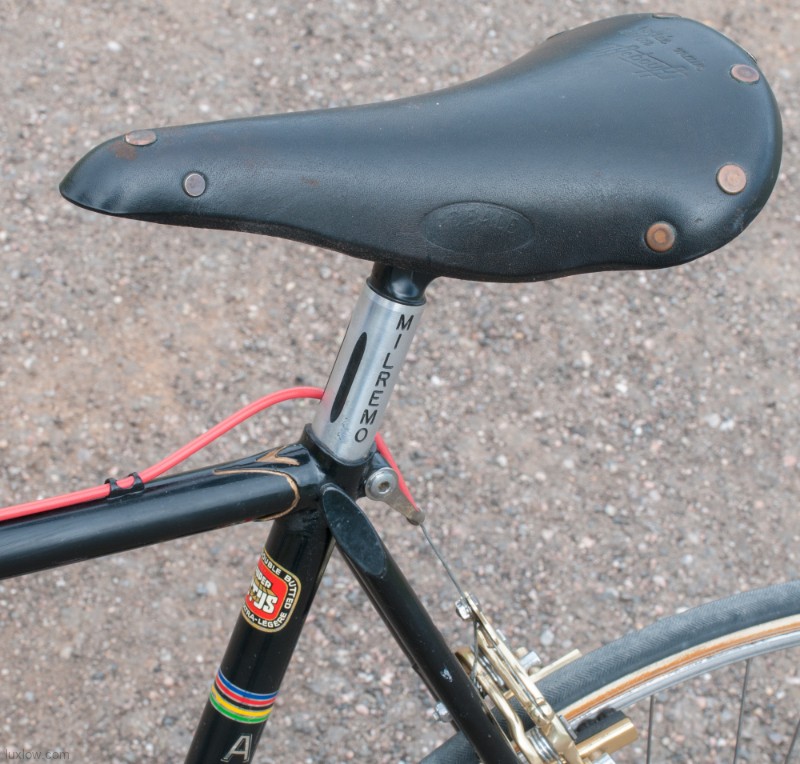 This Bertin is Ready to go, although it’s Not a Lux Low Patina Restore. The bike came from a Respected Collector / College who had the bike rebuilt or at least kept up with proper service. The Bike measures 56cm from the center of the bottom bracket to the center of the top tube or 58cm Center to Top of the top tube. The top tube is 56cm center to center. Pretty Sure in Bertin Sizing this is called a 58cm Frame / Bike. The Frame and Fork are Super Vitus Steel Tubing. The bike has Top of the line French Parts: Spidel / Stronglight Cranks, Spidel / Mavic Hubs, Gold but Faded Spidel Competition / Stronglight Headset, Bottom Bracket, Seatpost, and Gold MAFAC 2000 Brakes. The Dérailleurs are Gold Simplex Super LJ, nice Stuff . Bike has a Ideale Leather Saddle and 700c wheels with Tubular Rims and Tubular tires. I acquired a Beautiful collection of Vintage Road bikes and I Really like this Bike, Although I Consider this one of my Personal bikes everything is for sale. Enjoy.