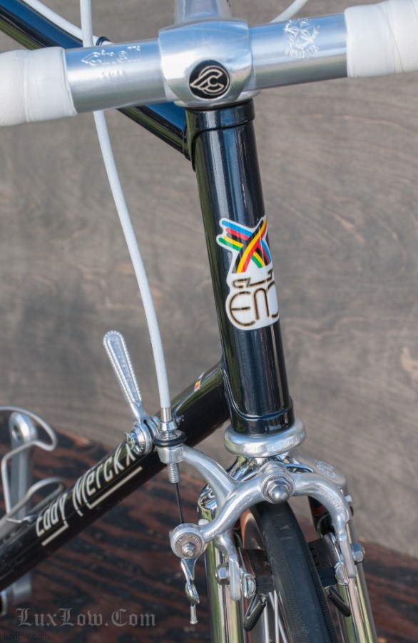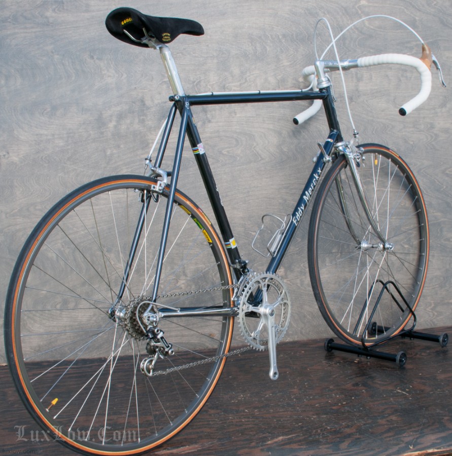This Eddy Merckx is Restored with New Paint, Repaint work from Cycle Art in California, they do good work too bad they put there calling card in the paint, for that they suck. It’s a Beautiful bike though. The Bike is official 60cm Eddy Merckx Size and measures 60cm from the center of the bottom bracket to the center of the top tube or 61.5cm Center to Top of the top tube. The top tube is 58cm center to center. The Head tube is 174mm tall. The Frame and Fork are Columbus Steel Tubing. The bike has Campagnolo Super Record Parts: Cranks, Front and Rear Dérailleurs, Bottom Bracket, Seat post, Brakes, and Levers, Nice Stuff. Bike has a Concor Supercorsa Saddle, Eddy Merckx Pantographed Cinelli Stem and Cinelli 64-44 Handlebars, and a Sachs Headset. The wheels are 700c with Campagnolo Low Flange Record hubs laced to Mavic MA-40 Rims and Eddy Merckx Open 700c clincher tires. Bike is obviously restored, parts are very nice some look NOS, The bike saw very little use after restoration, Great bike, Although I Consider this one of my Personal bikes everything is for sale. Enjoy.Local Sale: Cash Pickup in Golden, Colorado. Cash Price is Lower than our web posted prices.