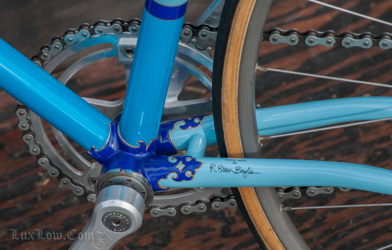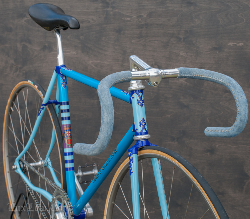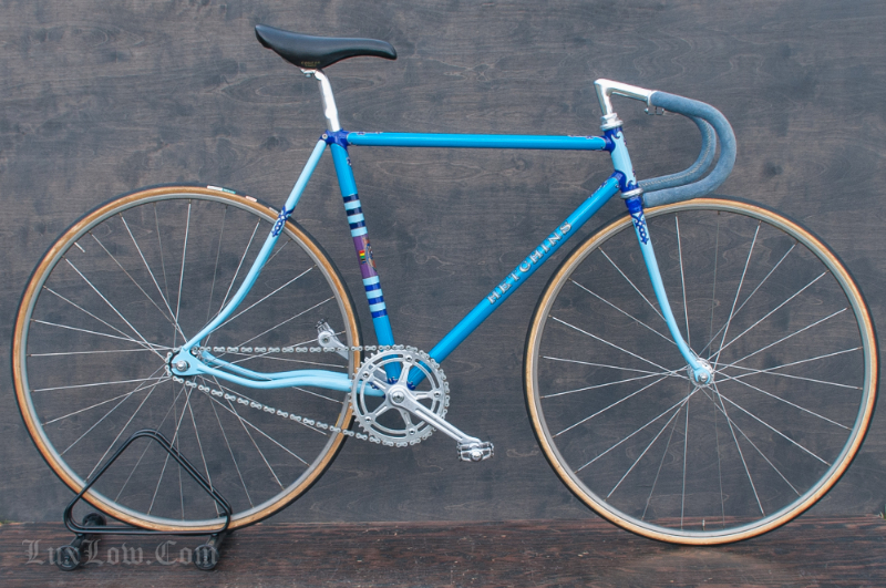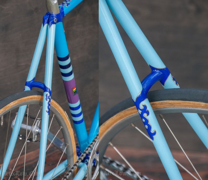 This is a Amazing Vintage 50cm x 52cm Purple and Blue Hetchins Magnum Opus Vibrant Track Bike was custom painted by Brian Baylis and was his personal bike. Bryan Baylis was a Well Know Iconic frame builder, painter, artist, craftsman from the United States. Unfortunately Brian is no longer with us a Bikes like this, Live on and Continue to Pay respect showing his work as a Master Artisan. Brian custom ordered this frame from Bob Jackson owned Hetchins in 1990 and he painted it himself. The Hetchins is Magnum Opus vibrant / curly stay with ornate hand cut lug work is ” Top of the Line ” and is a prime example of Hetchins Craft and Beauty. Hand made Custom Built Steel Frame made of Columbus PL Steels tubes, Silver Soldered, and adorned with Campagnolo Parts. This Bicycle is Beautiful is filled with History and would be a great addition to a collection or a Retro Rider.