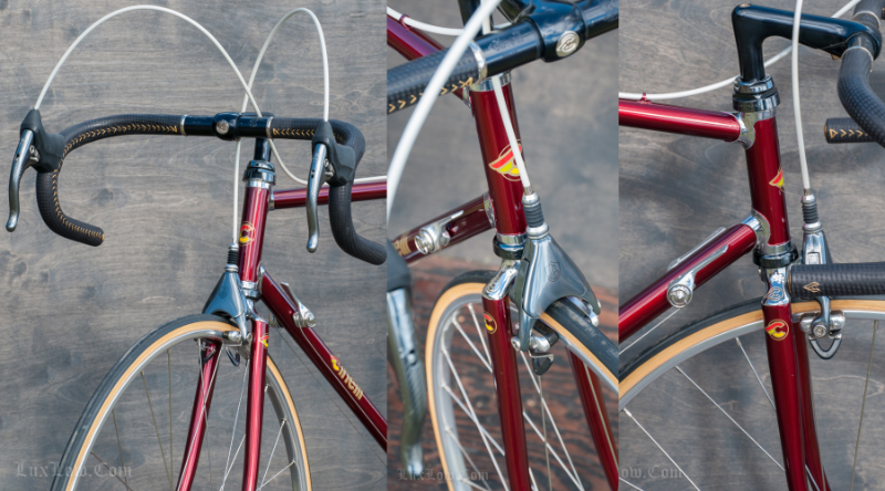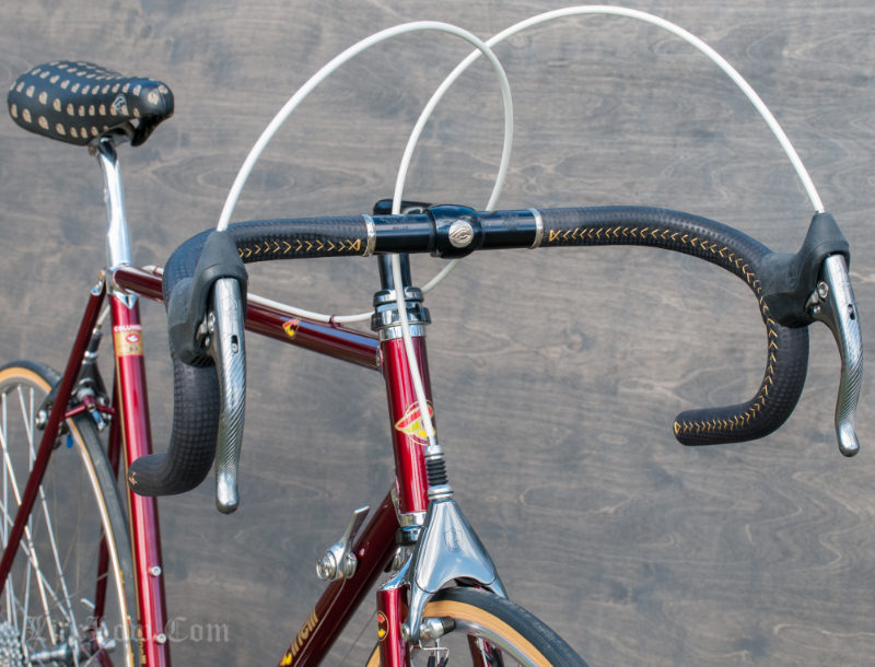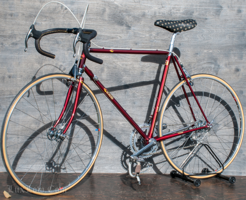 Stunning Vintage Maroon Cinelli SuperCorsa 57cm Racing 12 Speed Road Bike. It measures 55.5cm from the center of the bottom bracket to the center of the top tube or 57cm Center to Top of the top tube. The top tube is 56cm center to center and the Head tube is 138mm tall. The Serial Number is 9100XX so from 1991. The Bike is a Beauty, immaculate, and a show stopper. The bike has NOS Campagnolo Century Finish Corsa Record Parts: Cranks, Front and Rear Dérailleurs, Sheriff Star Hubs, Headset, Delta Brakes, and Brake Levers, Real Nice Stuff. The Shifters, Bottom bracket ,seat post, and skewers are regular finish Campagnolo C Record. The Pedals are Campagnolo track pedals with Cinelli Cages and Straps. The Bike has NOS Cinelli Limited Edition 64-40 Handlebars, & Leather Wrap, Stem, and Leather Unicator Saddle. The wheels are 700c Campagnolo C Record Sheriff Star hubs Hubs laced to Campagnolo Record Crono Clincher rims with tires and a super light 6 speed campy freewheel. This vintage road bike weighs around 21 pounds. This is a Super Sweet Italian Vintage Bike for a Collecting or a Pimp Retro L’Eroica Rider.Local Sale: Cash Pickup in Golden, Colorado. Cash Price is Lower than our web posted prices.
